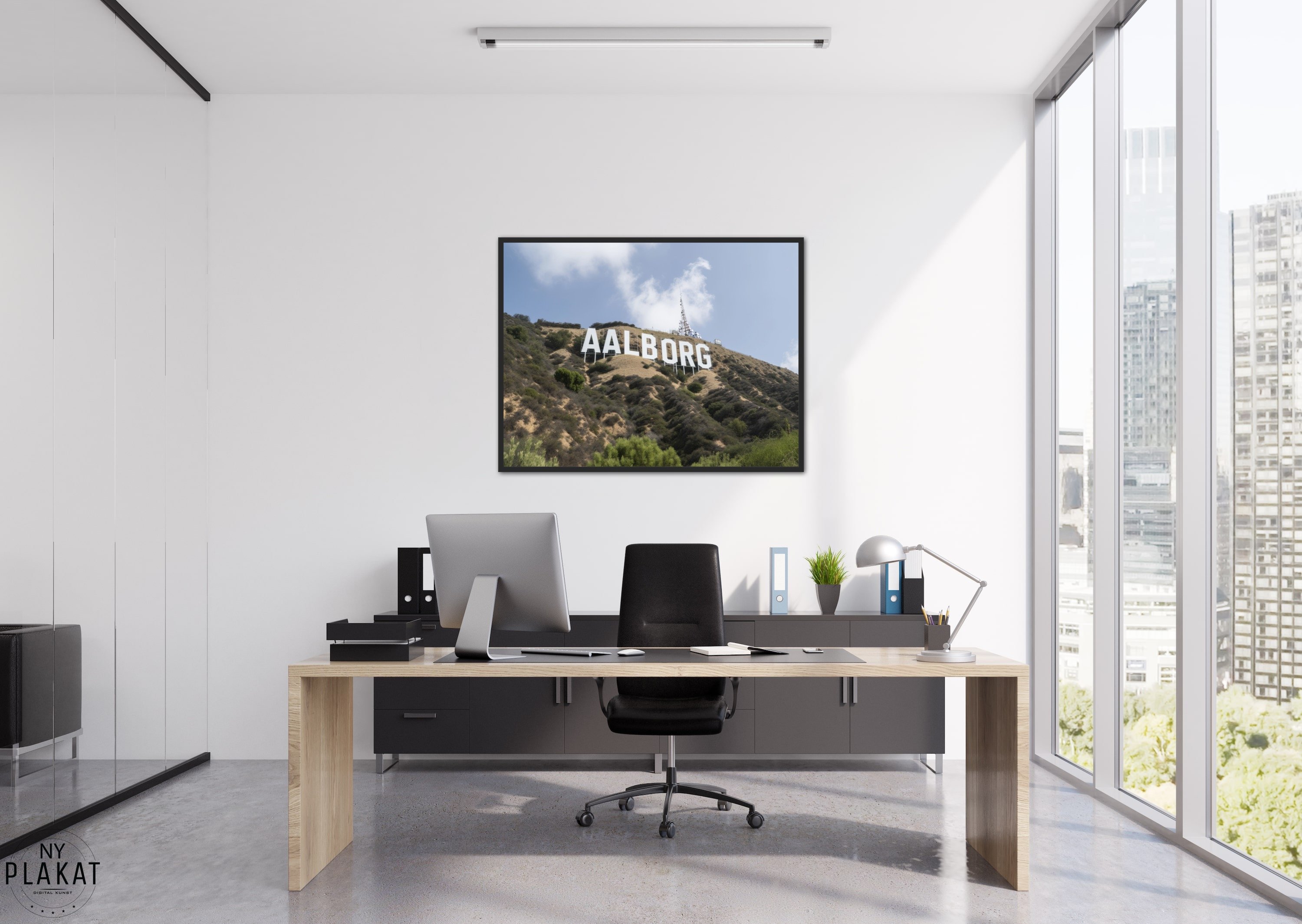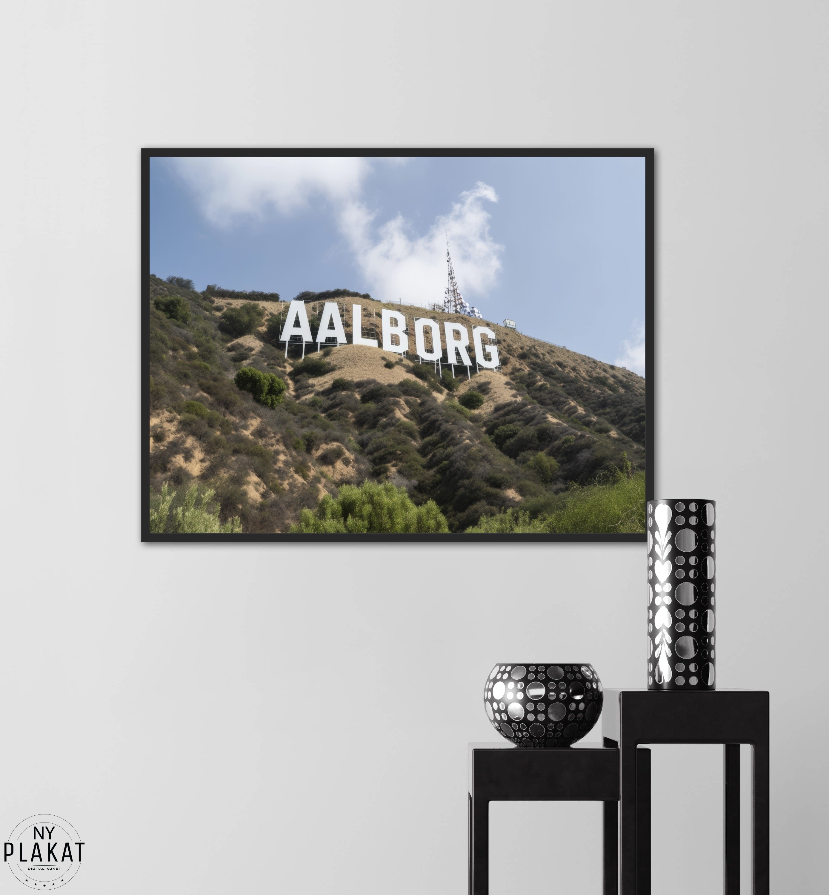 Træd ind i Aalborgs unikke atmosfære med Aalborg Byplakat 1, der bringer en frisk og fornyet fortolkning, inspireret af det berømte Hollywood-skilt. Denne plakat er ikke blot en dekoration; den er et symbol på byens stolthed.
